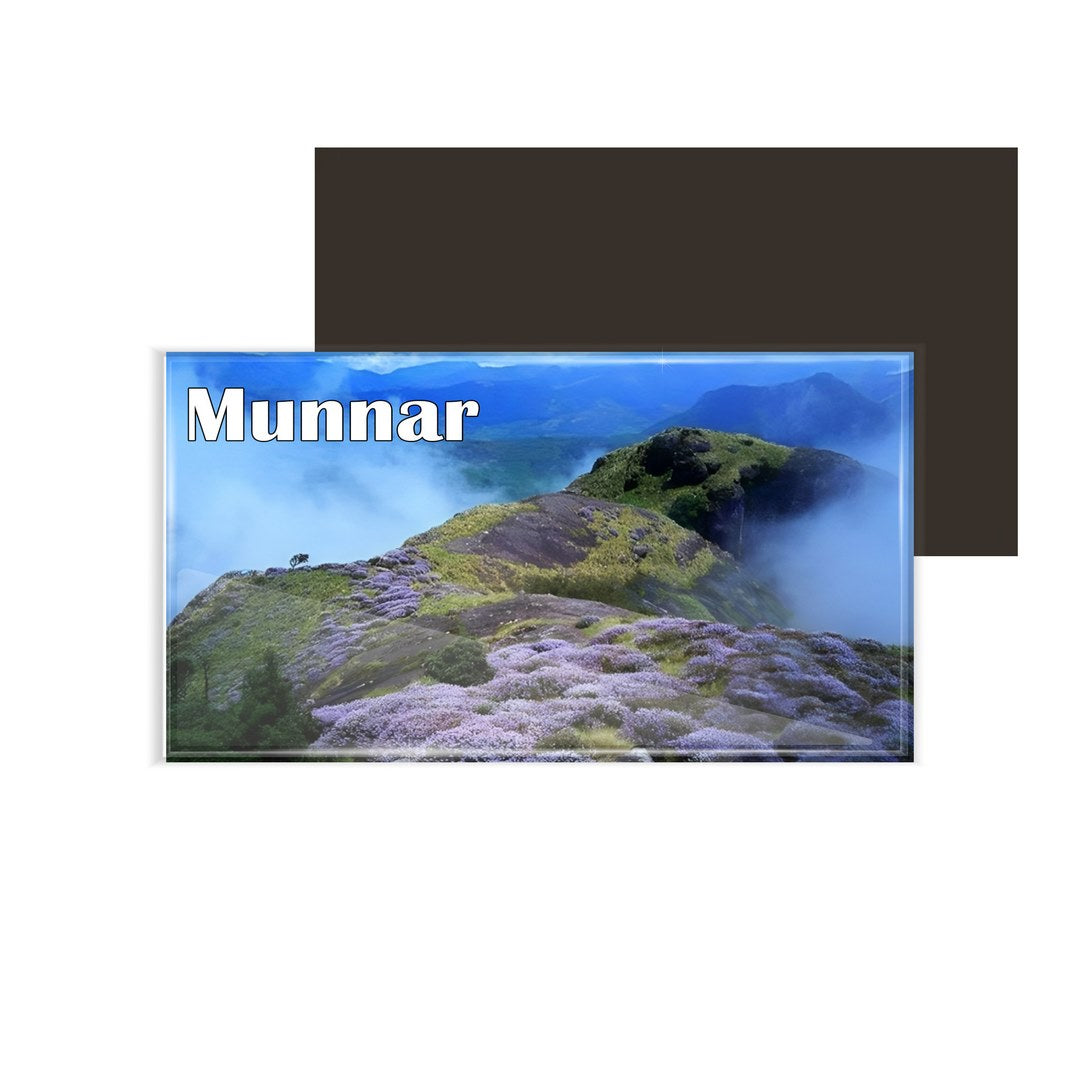 dhcrafts Rectangular Rubber Fridge Magnet / Magnetic Card Multicolor Kerala Munnar D1 Neelakurinji Design Pack of 1 (8.6cm x 5.4cm)