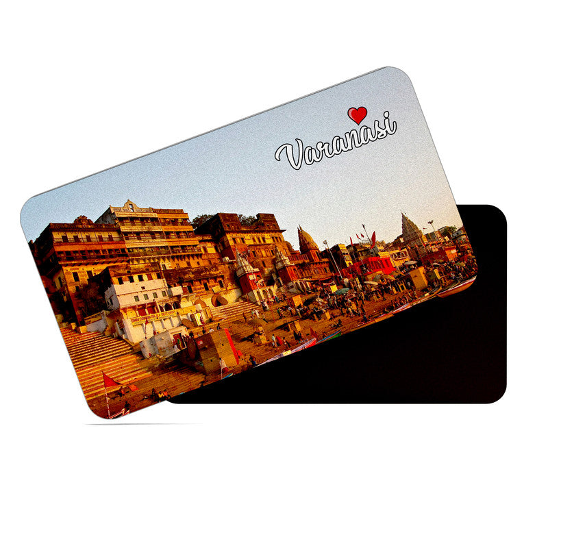 dhcrafts Rectangular Rubber Fridge Magnet / Magnetic Card Multicolor Uttar Pradesh Varanasi Design Pack of 1 (8.6cm x 5.4cm)
